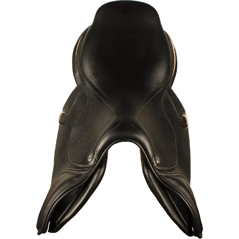 • Dressage Saddle: Has a straight flap to promote a more upright position and better communication with the horse.